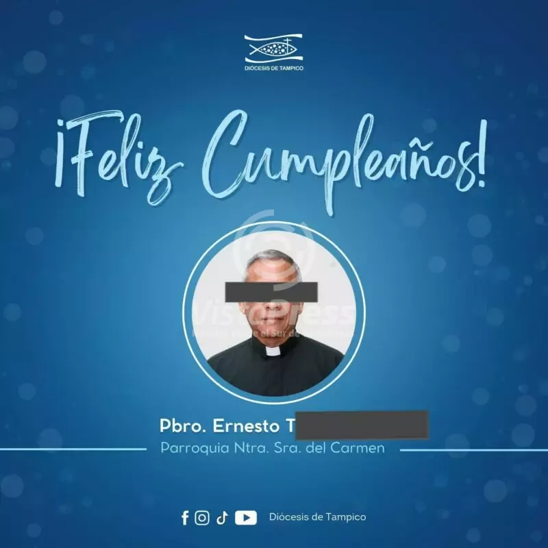 Tampico, TAM.- La Arquidiócesis de Chicago informó a la comunidad de la parroquia San José Sánchez del Río sobre una denuncia de abuso sexual contra el sacerdote Ernest Tovar-Trejo, clérigo perteneciente a la Diócesis de Tampico, México, quien en años anteriores visitó la iglesia Maternity of the Blessed Mother y celebró misas sin contar con los permisos correspondientes.
