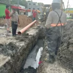 En la Avenida 2 de Mayo de la colonia Nuevo Tampico, personal técnico especializado efectúa el cambio de una línea de drenaje de 10 pulgadas que se encuentra dañada, desarrollando labores similares en la calle Miguel Hidalgo de la colonia Lázaro Cárdenas, donde también se sustituyó importante tramo de tubería del mismo diámetro que estaba averiada.