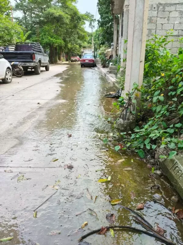 Así mismo los quejosos han referido que niños y adultos, ya se han resbalado en más de una ocasión; debido a la humedad provocada por el enorme desperdicio del vital líquido.