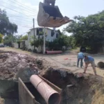 Asimismo, se realiza la instalación de una tubería subterránea de drenaje de 24 pulgadas en la calle Cuauhtémoc esquina con Golfo Pérsico, de la colonia Loma Alta, en el sector Monte Alto, lo que está comprendido dentro de las acciones de mejoramiento de la red hidrosanitaria.