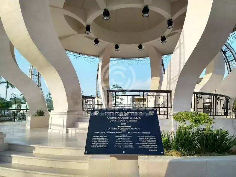 Ciudad Madero, Tam.- El Ayuntamiento de Ciudad Madero inició una investigación para esclarecer la desaparición de la placa conmemorativa del quiosco ubicado en la plaza Isauro Alfaro Otero, luego de que esta fuera retirada sin previo aviso.