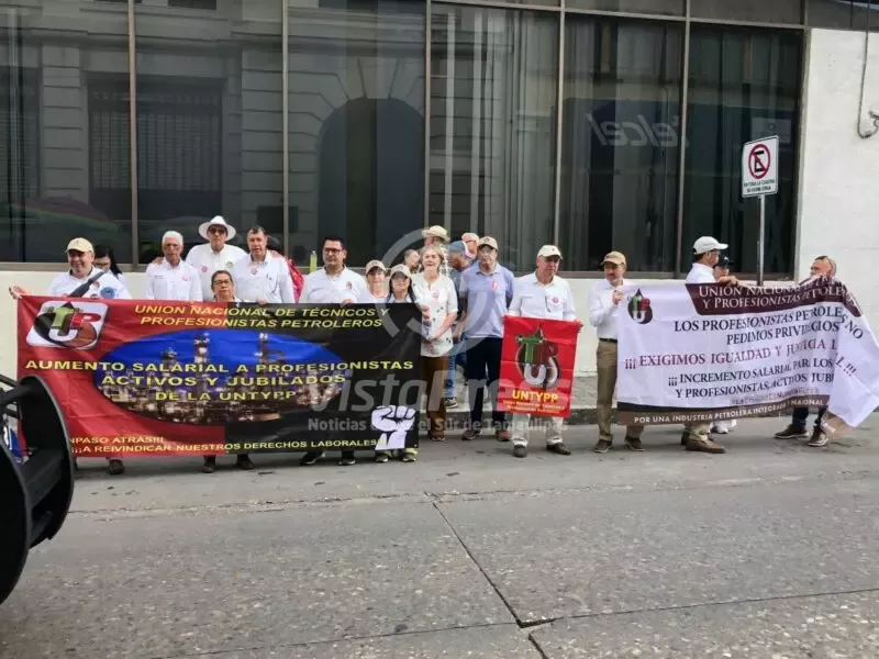 Tampico, TAM.- Trabajadores técnicos y profesionistas de Petróleos Mexicanos (Pemex) se manifestaron este martes a las afueras de las oficinas de la empresa en Tampico, al asegurar que son el único gremio a nivel nacional que no recibió incremento salarial, a pesar de los ajustes otorgados al resto del personal.