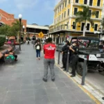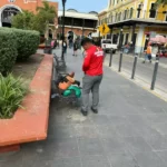 Tampico, Tam.- Elementos de la Guardia Estatal solicitaron apoyo para valorar a una persona en situación de calle en la plaza Hijas de Tampico, en el centro de la ciudad.