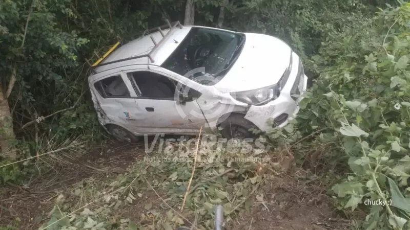 Cabe destacar que el vehículo compacto al salirse de la carpeta de rodamiento, quedó entre la maleza; lo que quizás amortiguó el golpe.