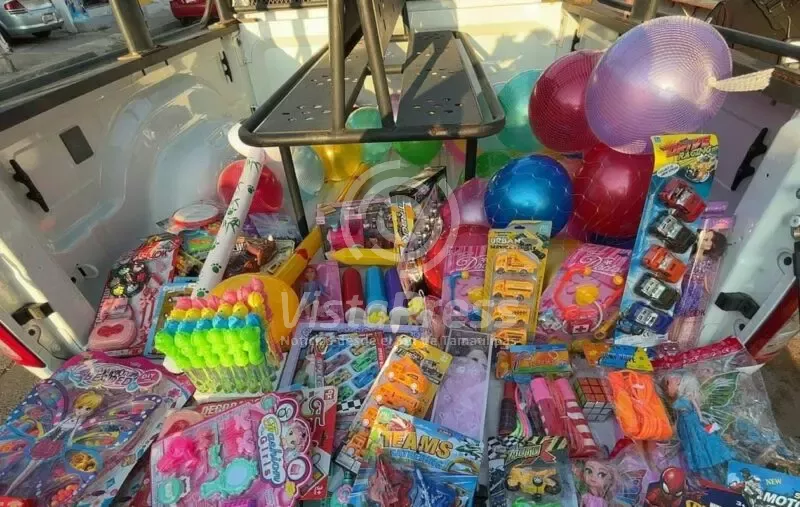 Después arribaron a la Plaza Galeana, ubicada en la colonia Tinaco, sobre la avenida Primero de Mayo y Privada Aguascalientes, donde continuó la entrega de juguetes a menores que se encontraban acompañados de sus familias.