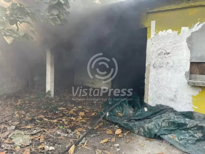 Tamuín, S.L.P.-Una vivienda quedó envuelta entre las llamas, esta mañana en la colonia Las Brisas.