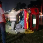 El vehículo se impactó con un poste metálico de alumbrado público del camellón central, para después terminar volcado.