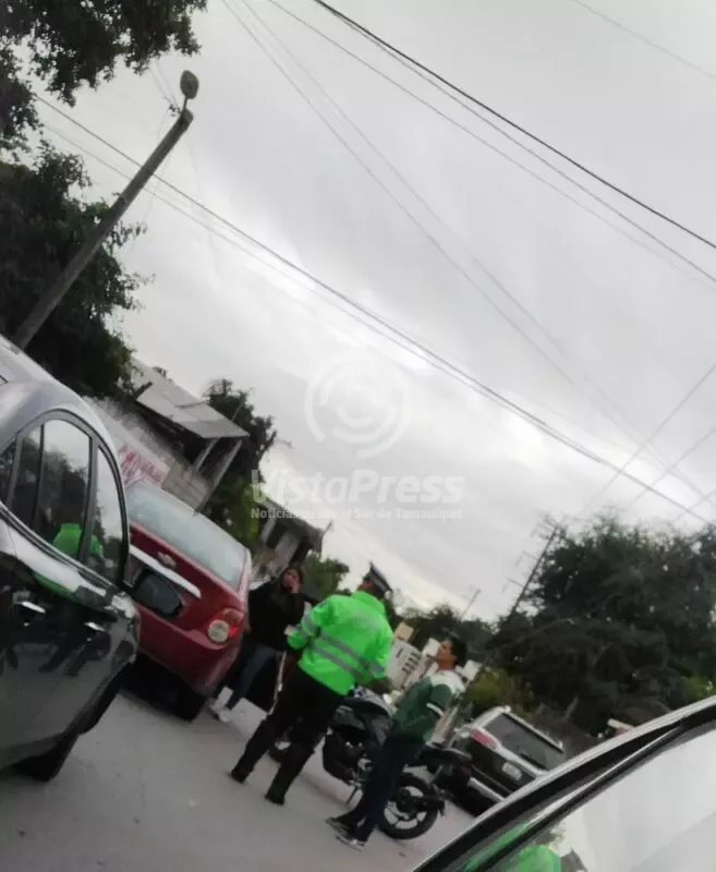Pánuco, Ver.-El choque de una motocicleta contra un automóvil compacto, dejó como saldo daños materiales.
