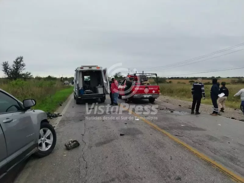 Ébano, S.L.P.-Un trágico accidente se registró esta tarde en la carretera Valles – Tampico, en el punto conocido como Los Pinos, antes de llegar a Ébano, tramo correspondiente a este municipio y Tamuín.