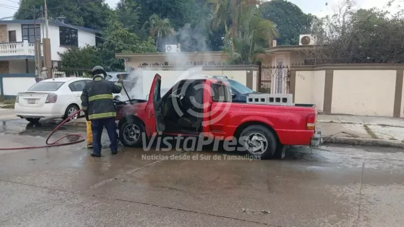 Ciudad Madero, TAM.- La mañana de este martes se registró el incendio de una camioneta en la colonia Unidad Nacional, lo que generó la rápida movilización de elementos del Cuerpo de Bomberos y Protección Civil, sin que se reportaran personas lesionadas.