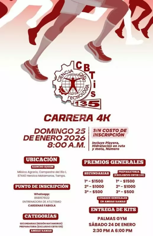 Ya por último, el director del Cbtis 135 dijo que éste domingo 25 de enero, se llevará a cabo una carrera atlética organizada por éste plantel.