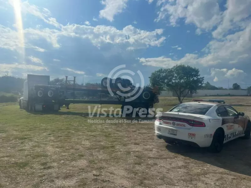 Ciudad Victoria, Tamaulipas.- Al realizar recorridos de seguridad y vigilancia sobre la Carretera Estatal 126 Rumbo Nuevo tramo Juan Capitán-El Chihue, personal de la Dirección de Tránsito Estatal aseguró un tractocamión y tres porta contenedores que circulaban con datos manipulados.