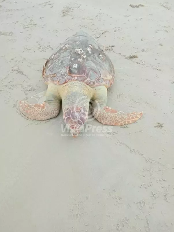 Ciudad Madero, Tam.- La mañana de este martes fue localizada una tortuga caguama (Caretta caretta) sin vida en la zona de la torre 2 de guardavidas, en Playa Miramar, a la altura de las escolleras.
