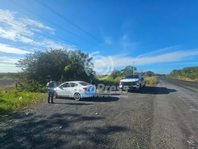 El hallazgo se registró en el kilómetro 11, donde los agentes detectaron un automóvil Nissan Versa color blanco, sin ocupantes, estacionado a un costado de la carpeta asfáltica.