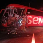 Linares, Nuevo León.– Un fuerte accidente se registró sobre la carretera Victoria–Monterrey, a la altura del kilómetro 136, en las inmediaciones del ejido La Soledad, donde un autobús de la línea Senda fue impactado por un tráiler cuyo conductor se dio a la fuga.