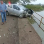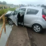 Altamira, Tam.- Un automóvil estuvo a punto de caer a la laguna de La Turquilla luego de protagonizar un aparatoso accidente vial sobre el puente que cruza dicho cuerpo de agua, en el camino vecinal de acceso al ejido 3 de Mayo, en la zona rural del municipio.