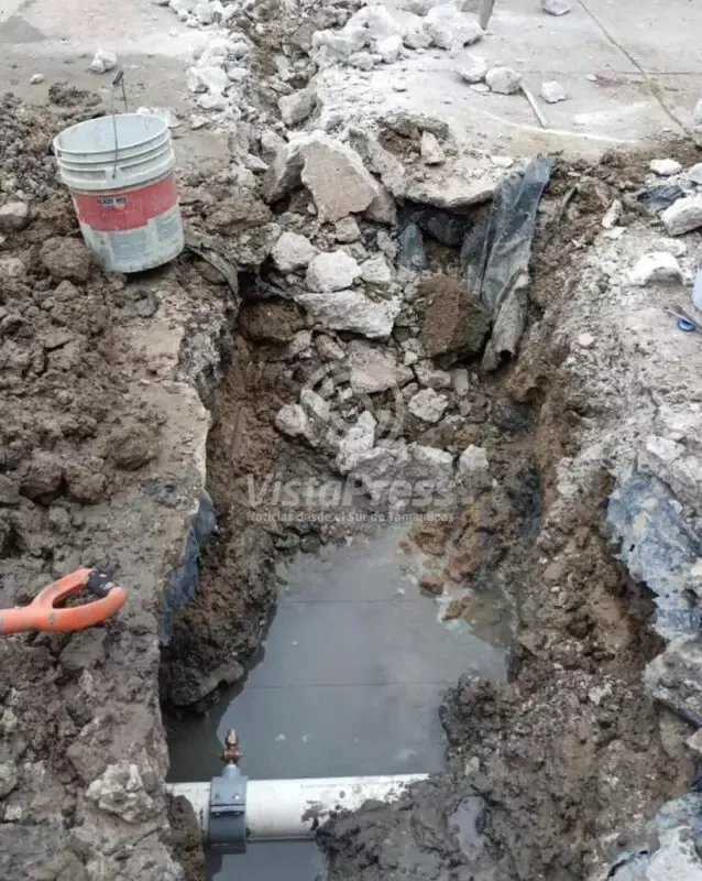 De igual manera, se llevó a cabo la reposición de toma en línea de 14 pulgadas en la calle C-16, entre Almaguer y Magdaleno Aguilar, del ejido La Pedrera, y en la calle Francisco I. Madero esquina con José María Morelos en la colonia Francisco I. Madero, luego del arreglo de una tubería por una fuga del vital líquido.