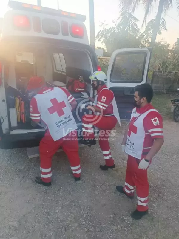 Al punto, arribaron paramédicos de la Cruz Roja división Pánuco, quienes trasladaron a bordo de la ambulancia, a un hombre de aproximadamente 34 años de edad, al hospital civil con posible fractura de rótula izquierda.
