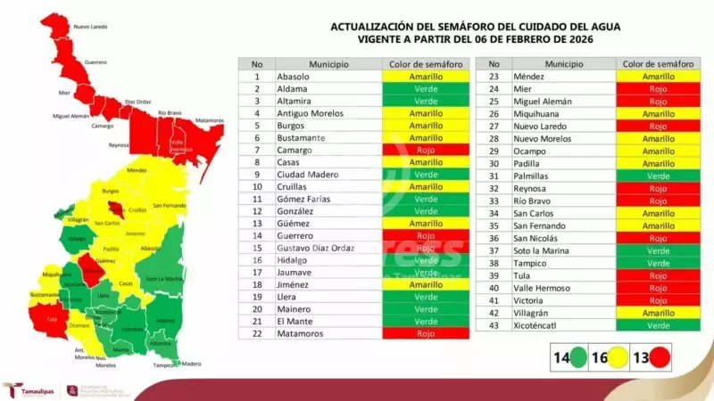 En color rojo permanecen: Camargo, Guerrero, Gustavo Díaz Ordaz, Matamoros, Mier, Miguel Alemán, Nuevo Laredo, Reynosa, Río Bravo, San Nicolás, Tula, Valle Hermoso y Victoria.