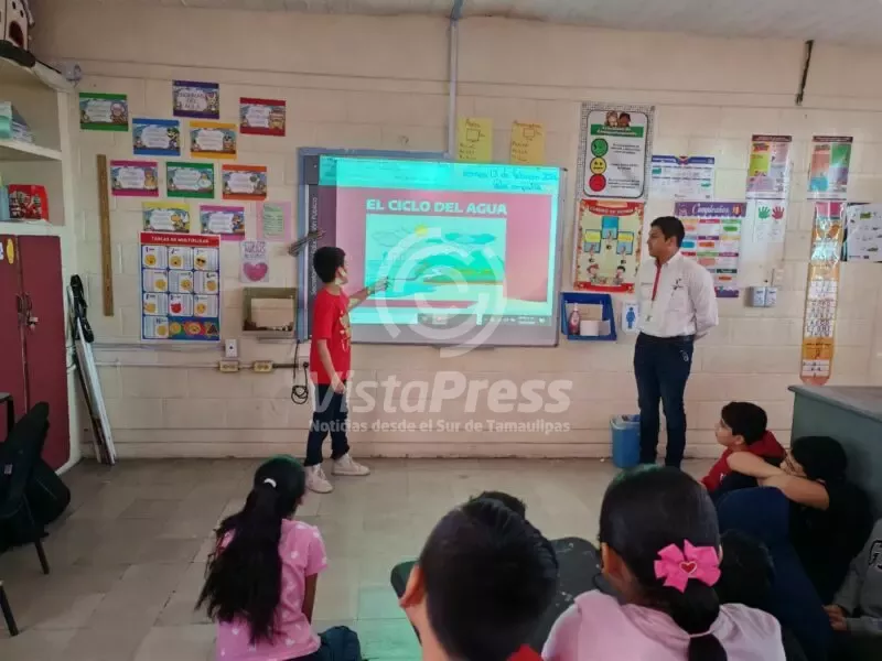 Como parte del programa de enseñanza Protectores del Agua, el Departamento de Cultura del Agua de COMAPA Sur impartió pláticas a alumnas y alumnos de nivel primaria en la Escuela Club 20-30 “Profesor Ignacio Ramírez Hernández”, ubicada en Tampico, fomentando hábitos responsables dentro y fuera del hogar.