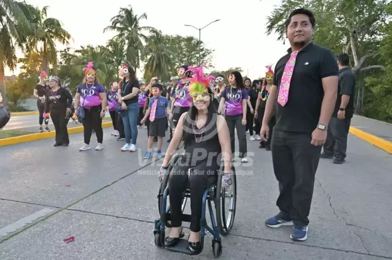 El carro alegórico del DIF Tampico se convierte en un símbolo vivo de respeto y convivencia. En él se ondeaban con fuerza las banderas de la comunidad sorda, la comunidad ciega, las personas con Síndrome de Down y las personas con discapacidad, enviando un mensaje claro y contundente: