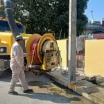 Empleando vehículos de presión y vacío, se desarrollaron trabajos de sondeo y desazolve de registros en la calle Río Papaloapan, entre Río San Fernando y Río Pánuco, del Fraccionamiento Santa Anita, y en calle Francisco I. Madero del Fraccionamiento Jardines de Champayán, para mejorar la operación del sistema de desagüe y prevenir obstrucciones en las tuberías.