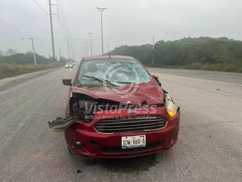 El fuerte accidente ocurrió cuando un vehículo Ford color rojo, con placas de Tamaulipas, circulaba presuntamente a considerable velocidad sobre la recta. De manera repentina, el equino se atravesó en el camino, provocando un brutal impacto que dejó la unidad con el frente destrozado y el parabrisas hecho añicos.