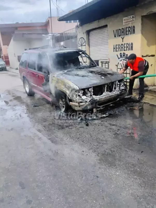 Tempoal, Ver.-Un presunto cortocircuito en el sistema eléctrico, provocó un incendio de una camioneta en la zona centro de este municipio.