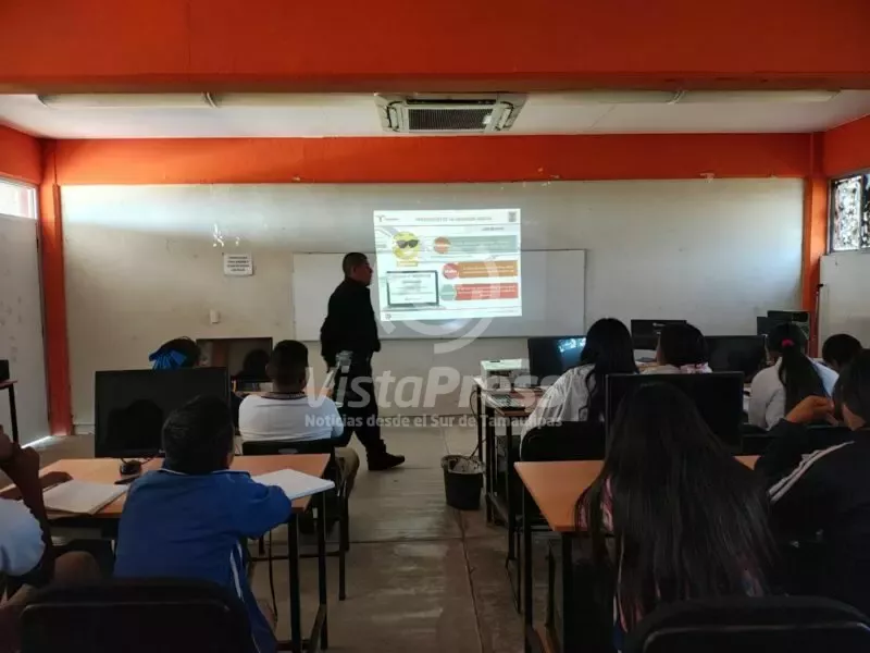 Altamira, Tam.- Con el objetivo de fortalecer la cultura de la prevención y el uso responsable de la tecnología entre adolescentes, personal de la Guardia Estatal Cibernética impartió la plática “Prevención de Delitos Cibernéticos” a estudiantes de la Escuela Secundaria General Número Tres “Ganett Saleh Gattas”.