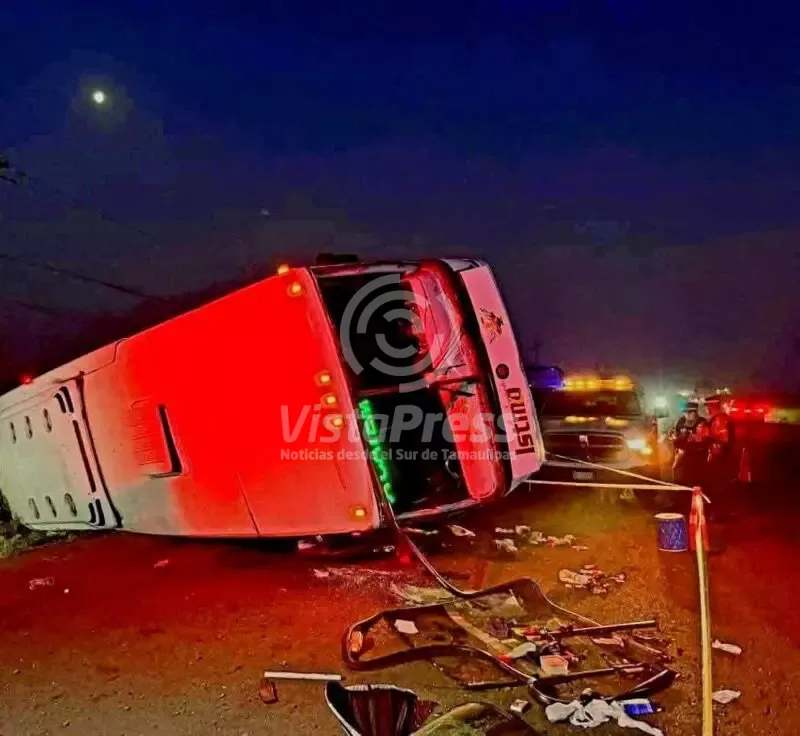 Muere madre e hija en volcadura de autobús; padre queda herido