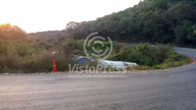 Antiguo Morelos, Tamaulipas.- Personal de la Guardia Estatal de Apoyo Carretero atendió la volcadura de un tractocamión tipo pipa que transportaba melaza en el kilómetro 192 de la Carretera Federal 80 Mante–El Huizache.