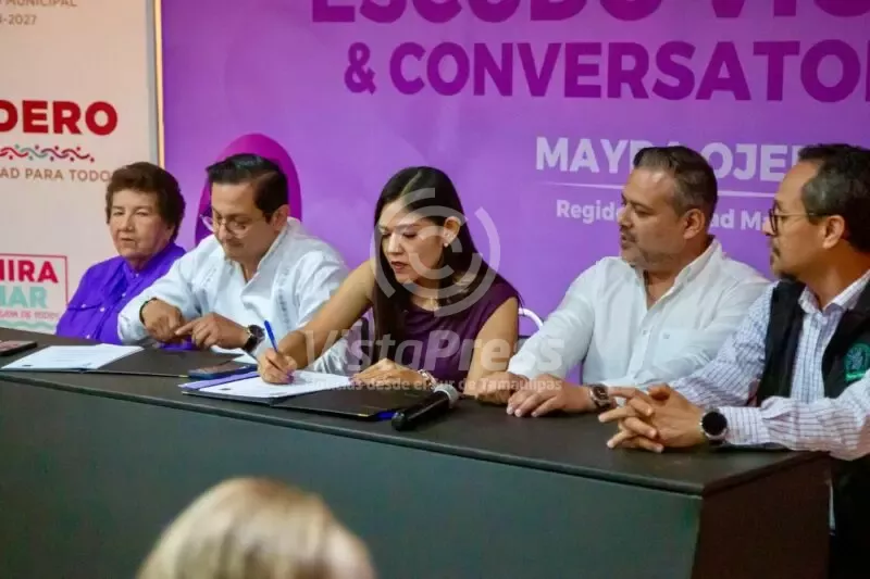 CIUDAD MADERO, TAMAULIPAS. En el marco de las conmemoraciones por el Día Internacional de la Mujer (8M), el Republicano Ayuntamiento de Ciudad Madero y el Colegio de Abogados de Tamaulipas A.C. formalizaron una alianza estratégica mediante la firma del convenio de colaboración “Escudo Violeta”. Esta iniciativa, impulsada por la Mtra. Mayra Rocío Ojeda Chávez, Regidora Presidenta de la Comisión de Derechos Humanos del H. Ayuntamiento, busca eliminar las barreras económicas que impiden a las mujeres acceder a una defensa legal adecuada.