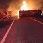 Segundos después, un segundo vehículo de carga —un full que transportaba base para lubricantes— se impactó brutalmente contra la pesada » mole «; el choque fue tan violento que en cuestión de instantes ambas unidades quedaron envueltas en llamas.
