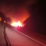 El ígneo elemento, se elevó varios metros, iluminando la oscuridad y generando una columna de humo visible a kilómetros de distancia; testigos describen el momento como “apocalíptico”, mientras el calor y las explosiones menores mantenían a raya a quienes intentaban acercarse.