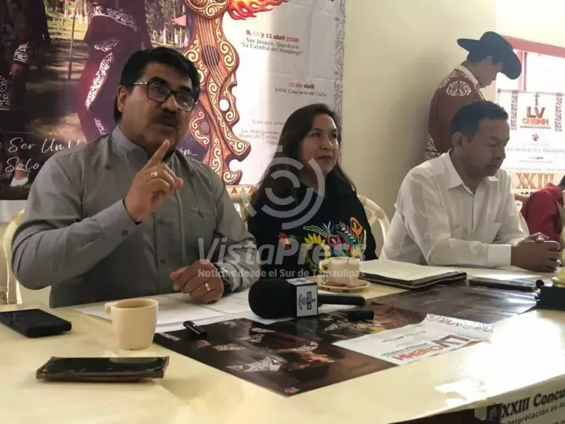 Tampico, TAM.- En rueda de prensa realizada en esta ciudad, se llevó a cabo la presentación oficial de la edición 54 del Concurso Nacional de Huapango Huasteco y el XXIII Concurso Nacional de Violín, eventos tradicionales que se celebran en el municipio de San Joaquín, reconocido como “La Catedral del Huapango”.