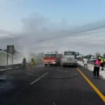 Tamuín, S.L.P.-La volcadura de una pipa, provocó que esta se incendiara provocando caos en rúa federal.