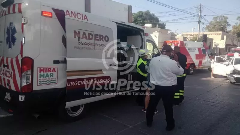 Ciudad Madero, Tam.- Momentos de pánico se vivieron la tarde de este miércoles tras un aparatoso choque entre dos automóviles en un transitado cruce de la colonia Primero de Mayo, dejando como saldo al menos ocho personas lesionadas.