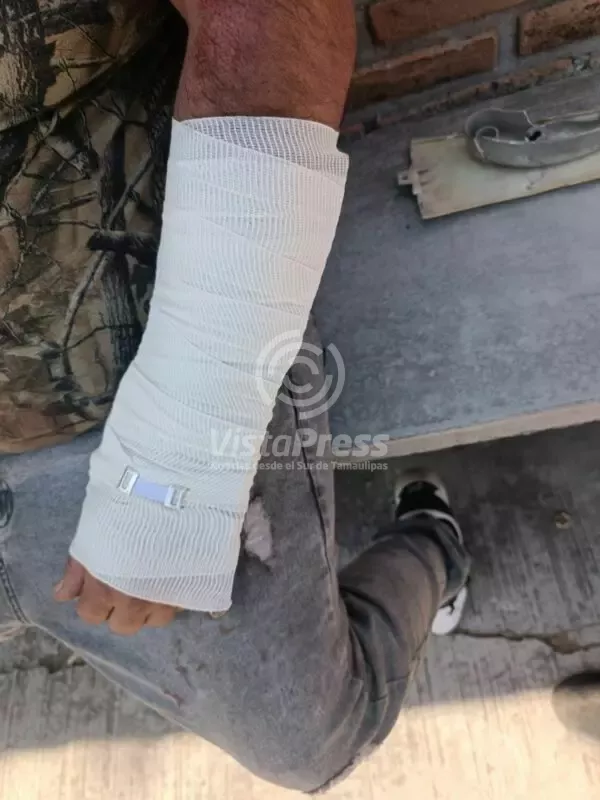 El ahora herido, fue atendido por un compañero y se improvisa férula, ya que presenta una posible fractura en su brazo.