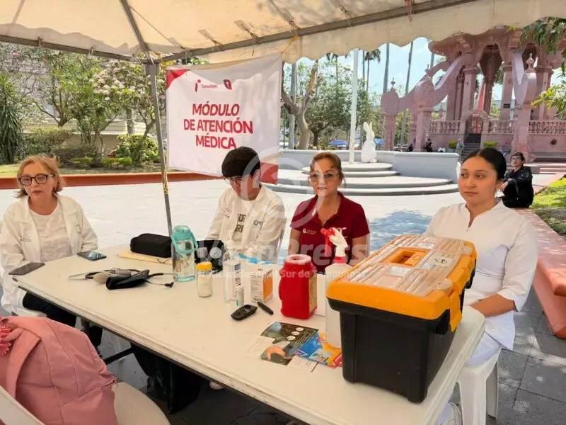 Tampico, Tam.- Un total de aproximadamente 80 personas han sido atendidas en el módulo de atención médica instalado en la Plaza de Armas, como parte de las acciones de prevención y cuidado de la salud durante el periodo vacacional.