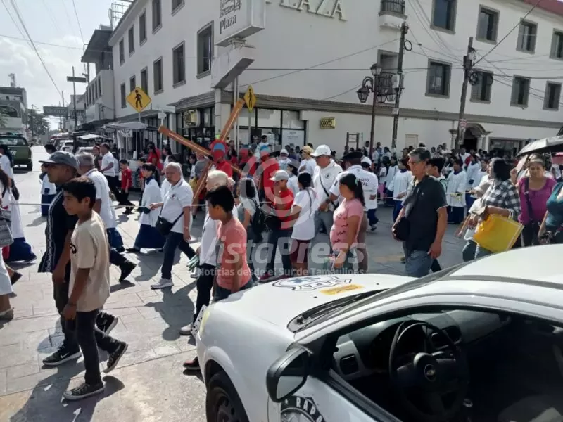 Pánuco, Ver.-Tras una invitación directa por parte de la parroquia San Esteban, paramédicos de radio auxilio de pánuco «RAPA» dieton cobertura al tradicional viacrucis que inició desde las 8:00 de la mañana de este viernes