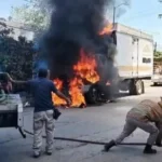 Por causas que aún no se confirman, el fuego comenzó a brotar del motor de la unidad, extendiéndose espectacularmente, hasta alcanzar la cabina; las llamas se elevaron de forma espectacular y una enorme fumarola de humo negro se formó y se podía apreciar a larga distancia.