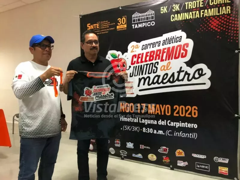 Tampico, TAM.- En el marco de las celebraciones del Día del Maestro, fue anunciada la 2ª Carrera Atlética “Celebremos Juntos al Maestro” en las distancias de 3 y 5 kilómetros, la cual se realizará el próximo domingo 17 de mayo en el boulevard perimetral de la Laguna del Carpintero