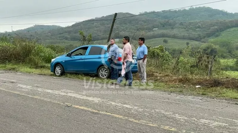 Tantoyuca, Ver.-Aparatoso accidente se registró en la carretera Alazán – Canoas, luego de que el conductor de una unidad compacta, perdiera el control de su vehículo y se saliera de la carpeta de rodamiento.