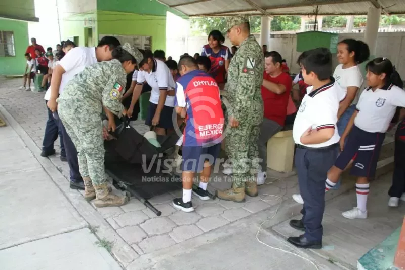 La Secretaria de la Defensa Nacional a través del 5/o. Batallón de Ingenieros de Combate con sede en Cerro Azul, Ver., impartió una conferencia de primeros auxilios en las instalaciones de la Escuela Primaria “Ejército Mexicano”.