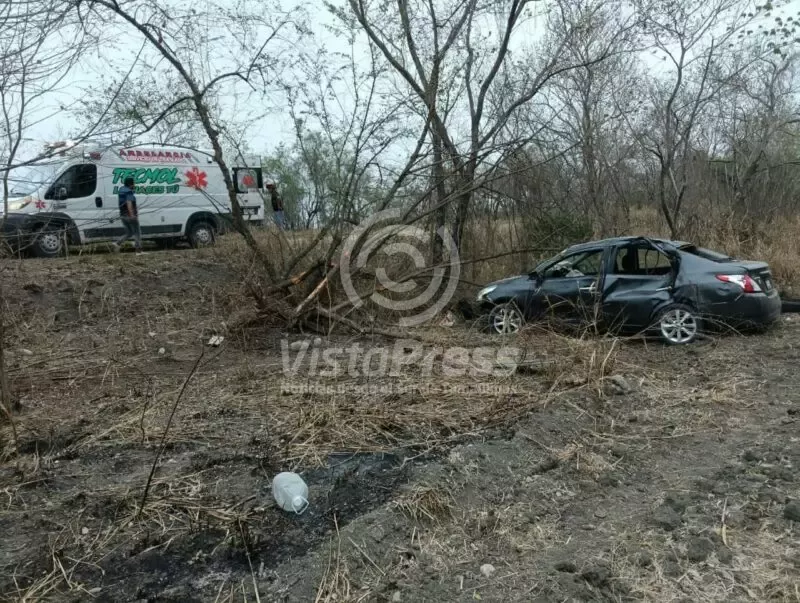 Tamuín S.L P.-El conductor de un vehículo compacto que se presume se desplazaba a gran velocidad, terminó lesionado, tras protagonizar una espectacular volcadura al salir de la carpeta de rodamiento, dando varias volteretas.