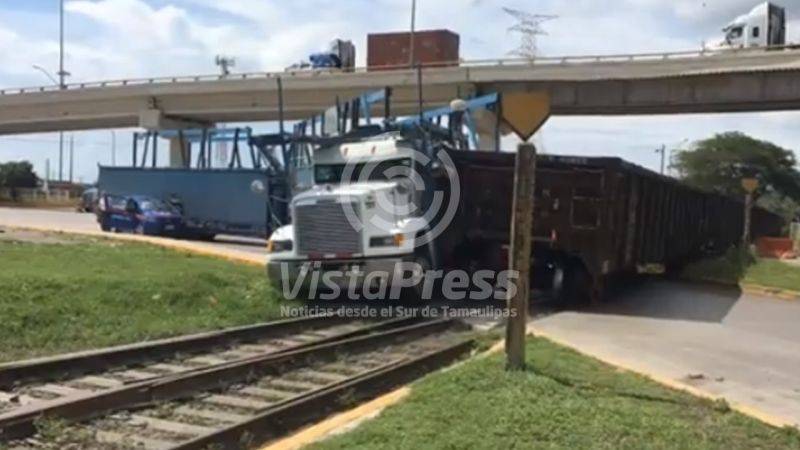 Tren se lleva a tráiler nodriza en el Puerto de Altamira