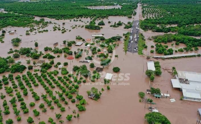 Las calles de la cabecera municipal de Tuxpan, Nayarit, están sumergidas bajo el agua tras el desbordamiento del río San…