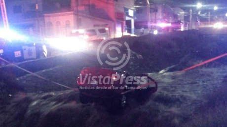 Socavón se abre en medio de una avenida y una pareja muere al caer con su auto en un canal cercano