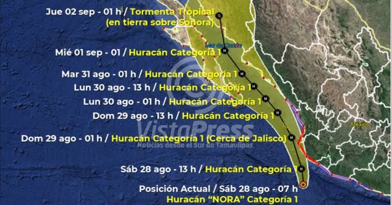Según el último aviso del Centro Nacional de Huracanes de Estados Unidos, Nora, de categoría 1 en la escala de…