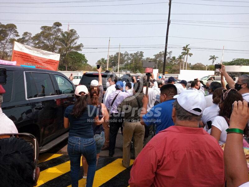 Entre protestas llega AMLO a la Refinería Madero